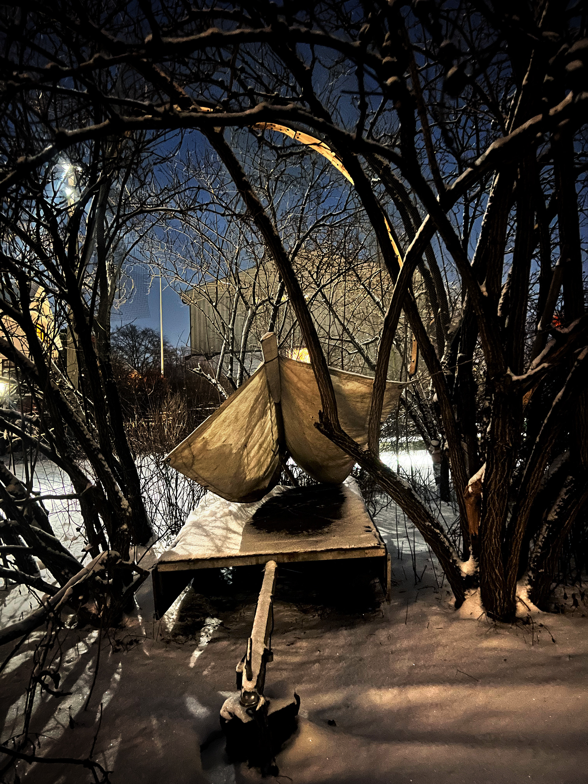 Havsjuk is a sculpture that can be touched, moved through, and explored – a spatial invitation to empathy and engagement. With its ambiguous construction, Anders Kjellesvik introduces a piece to the park that is playful, serious, and unsettling all at once. The installation has served as a refuge; now it stands as an open stage – a place where the audience is invited into a possible dramaturgy. At the top of Carl Berner, overlooking the city, Havsjuk rises as a reflection on the local and on a world out of balance – on the boundaries between captivity and freedom.